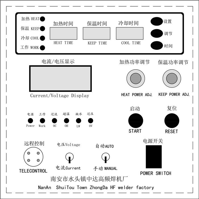 6、若使用定时(选配)操作,先设置定时时间,再将“手动-自动”开关置于自动。重复使用脚踏开关启动定时即可;